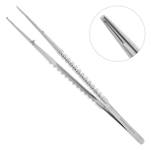 Пинцет хирургический прямой 40-97. Длина 18 см. Производитель: HLW Dental Instruments, Германия. Применение: Микрохирургический пинцет с анатомической формой исполнения рабочих частей предназначен для захвата, а также удерживания мягких тканей при проведении манипуляций в ротовой полости. Прямые бранши инструмента имеют ретенционный узор на внутренних поверхностях, благодаря чему пинцет надежно фиксируется на различных вспомогательных и диагностических принадлежностях, а также мягких тканях в ротовой полости. Тонкие и узкие бранши анатомического пинцета обеспечивают хорошую визуализацию рабочего поля при манипуляциях в полости рта. На внутренней поверхности инструмента имеется стоппер, который способствует плотному смыканию рабочих частей пинцета и предотвращает их расхождение друг относительно друга. Наружные поверхности инструмента имеют полукруглую форму и покрыты поперечными бороздками, предотвращающими скольжение фаланг пальцев в перчатке. Характеристики: Форма - Прямой. Рабочая поверхность - Хи